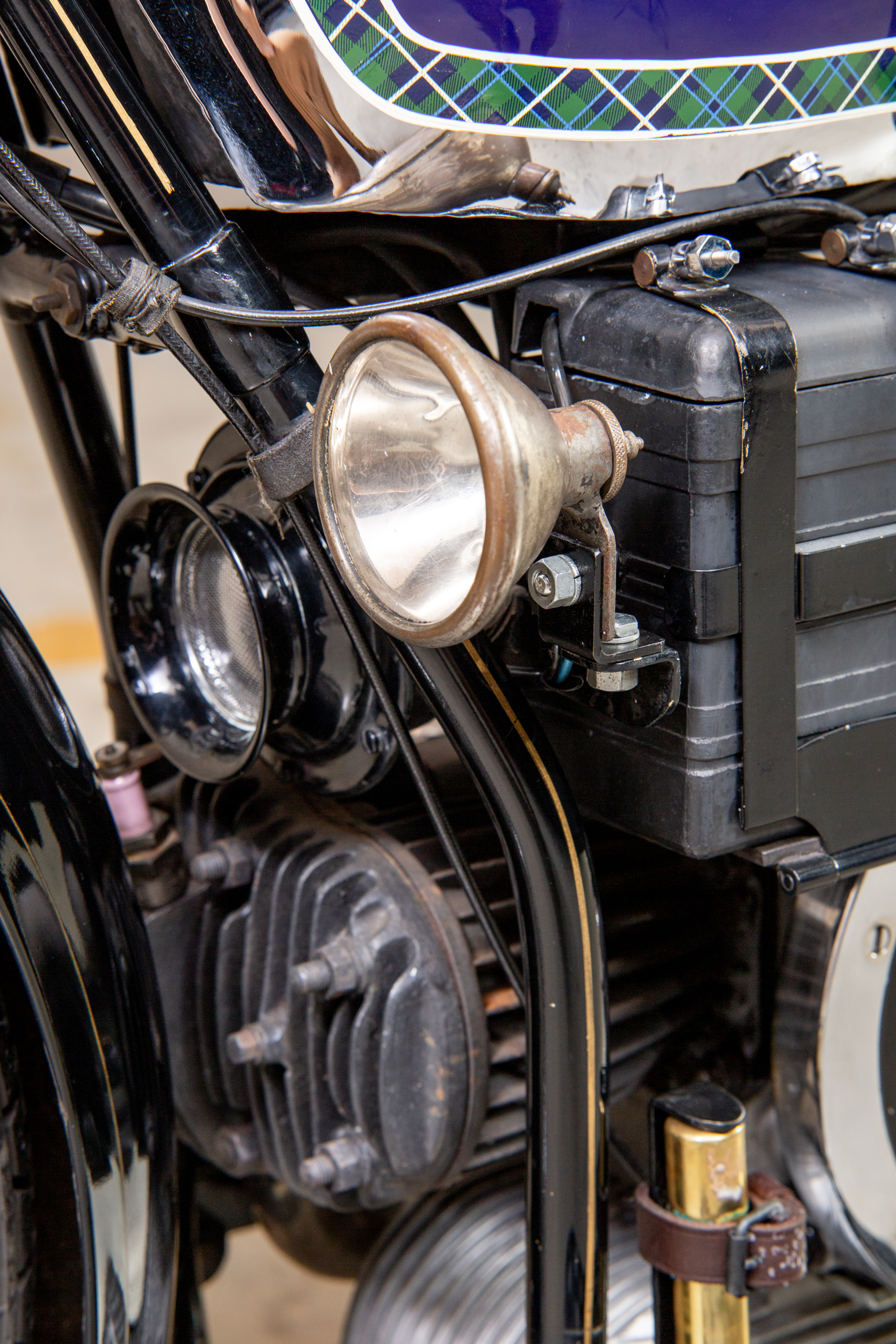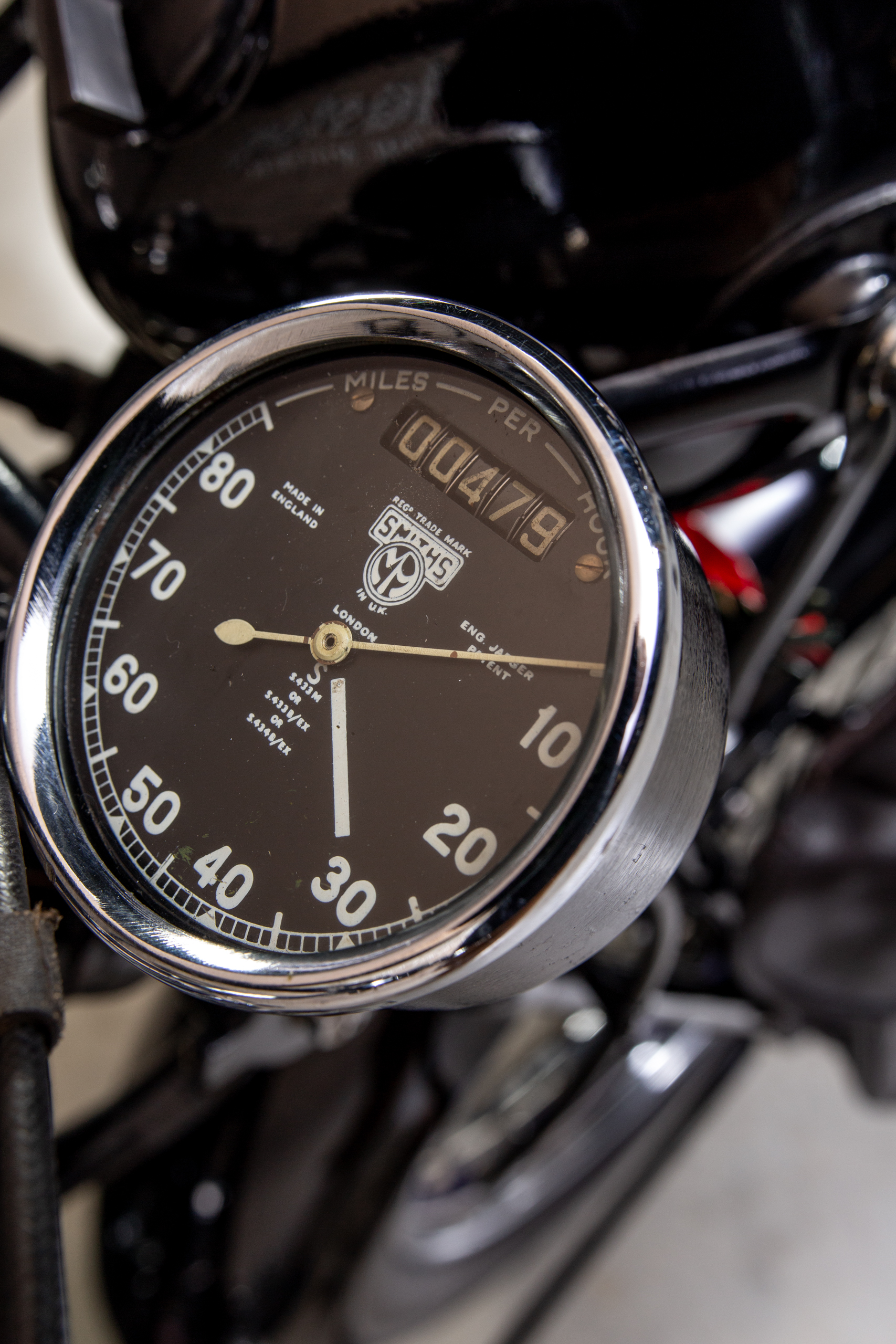 • It is fitted with a Smiths speedometer, 3 authentic leather bags and large passenger’s seat